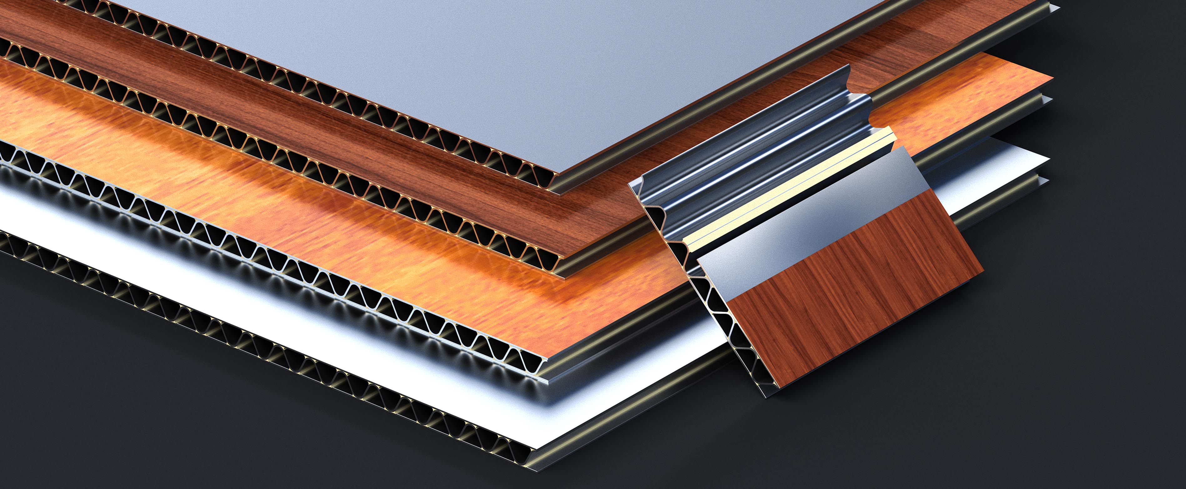 ? 材料構(gòu)成:鋁波紋芯復(fù)合鋁板主要由鋁合金波紋芯板作為芯層,兩面覆蓋鋁合金面板或鋁合金面板與高分子薄膜面板組成。