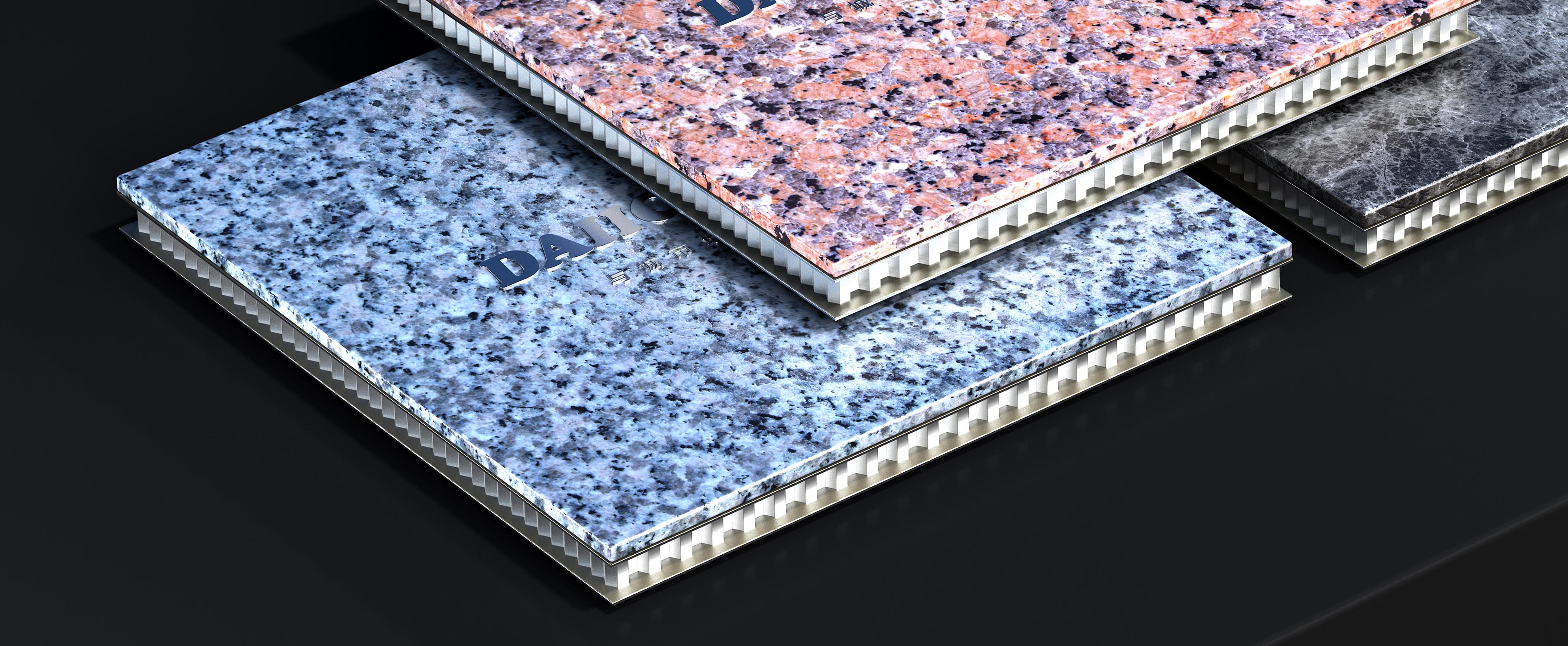 石材蜂窩板一般由3-5mm厚的石材薄板與10-25mm厚的鋁蜂窩板通過膠粘劑復(fù)合而成。這種復(fù)合結(jié)構(gòu)既保留了石材的裝飾質(zhì)感,又克服了天然石材重量大、易碎等缺陷。